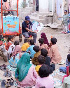 GoRead.pk’s Kahani Sawari (Stories on Wheels) is a community-driven initiative that brings the joy of story read aloud sessions to children in underserved communities. These unique culturally and developmentally appropriate stories are published in house by GoRead.pk and focus on developing children’s character (tarbiyah), compassion (ehsaas) and a love for reading (adab) in the children they serve. Children must be read to before we can expect them to read themselves – and that is what the Kahani Sawari initiative focuses on.