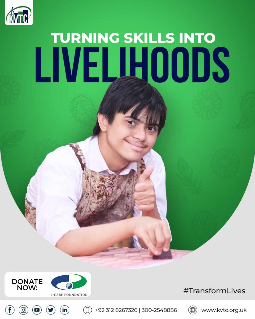 Since 1991, Karachi Vocational Training Centre (KVTC) has been committed to transforming lives by empowering individuals with intellectual and developmental challenges. Our mission is to create pathways for inclusion by equipping individuals with disabilities with vocational skills, building their confidence, and enabling them to become contributing members of society.